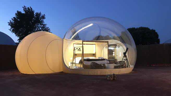 Los glamping inflable son una tendencia que se ha puesto de moda porque combina el camping tradicional con las comodidades de un hotel, también lo llaman camping de lujo. El glamping inflable está comprometido con el medio ambiente porque lo protege y permite disfrutar de la naturaleza que lo rodea, el firmamento del cielo y todas las experiencias de un campamento desde la comodidad de una habitación.